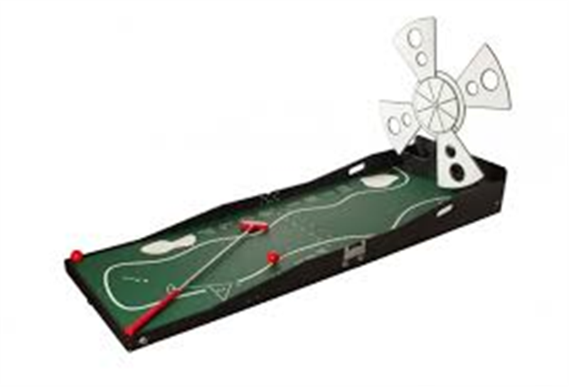 Driving game where you try to drive a golf ball down a ramp and into a c...