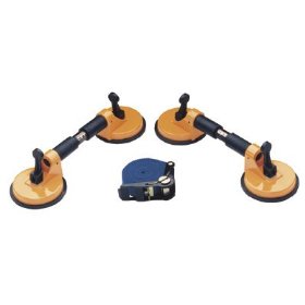 Product Description Aluminum back for added strength and durability; Double suction pads for secure grip; Can be used on glass, plastic, appliances, steel, aluminum; Each double pad handle can lift approximately 240 lbs.; Kit includes: (2 each) Double Suction Pads, Ratchet Tie Down optional.