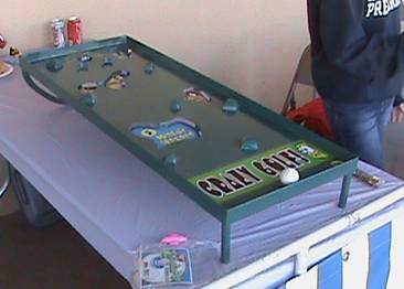 Crazy Golf Carnival Game is played by picking up the handles of the game and rocking the game back and forth to avoid the obstacles and get a hole in one. Not for young children.