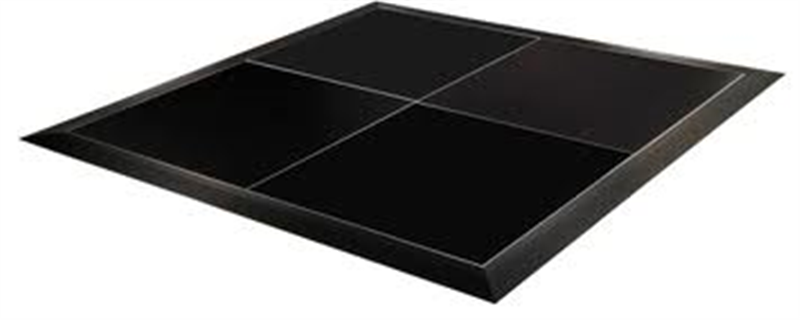 Black indoor/outdoor dance floor. Works great for outdoor wedding. No subfloor required. Large Square Panels - Spacious panels are 4? x 4?16sq ft., almost twice the area compared to 3 foot squares or 9 sq. ft.