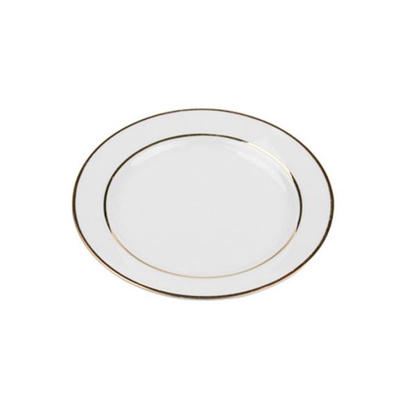 White 6'' dessert plate with gold rim.