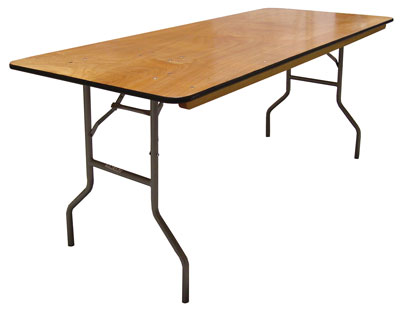8' Banquet Table with wooden top and folding legs.